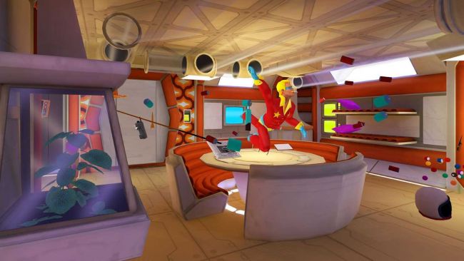 ¿Y qué haces en términos de gameplay? Pues aspirar basura, aplastar arañas con un matamoscas y lanzar calcetines al tendedero con algo que se describe mejor como un cañón de calcetines. Sobre el papel hay variedad, pero en la práctica resulta tan divertido como limpiar los canalones llenos de hojas del edificio después de llover. Ni hablemos de los combates contra jefes. Están escondidos en el rincón de la vergüenza del fondo, donde ningún ser humano debería verlos jamás. Es como si el juego tuviera ambiciones, quisiera ser algo más grande, pero el desarrollador ha apuntado demasiado alto y ha dirigido su barco de queso directamente hacia un iceberg.